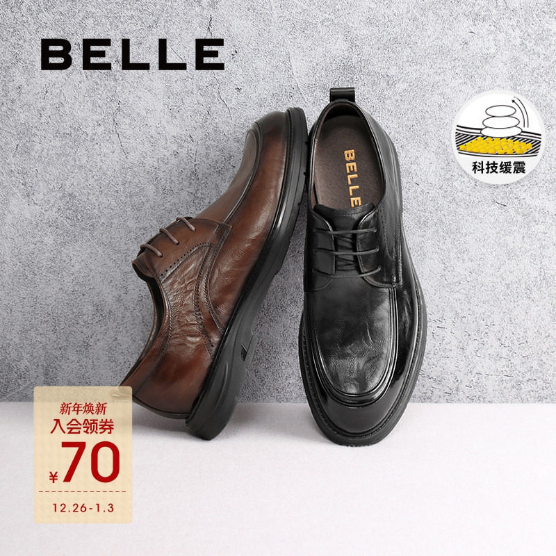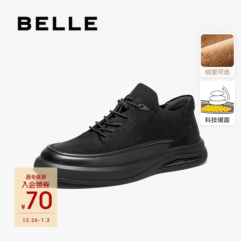 百丽男鞋厚底加绒商务真牛皮鞋男士冬季新商场通勤休闲鞋8VU01DM5