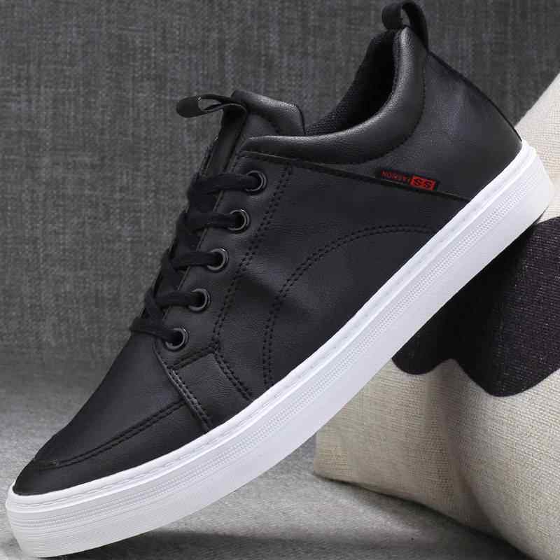 新款休闲皮鞋男款平底板鞋耐磨黑色男鞋运动休闲鞋透气百搭学生鞋