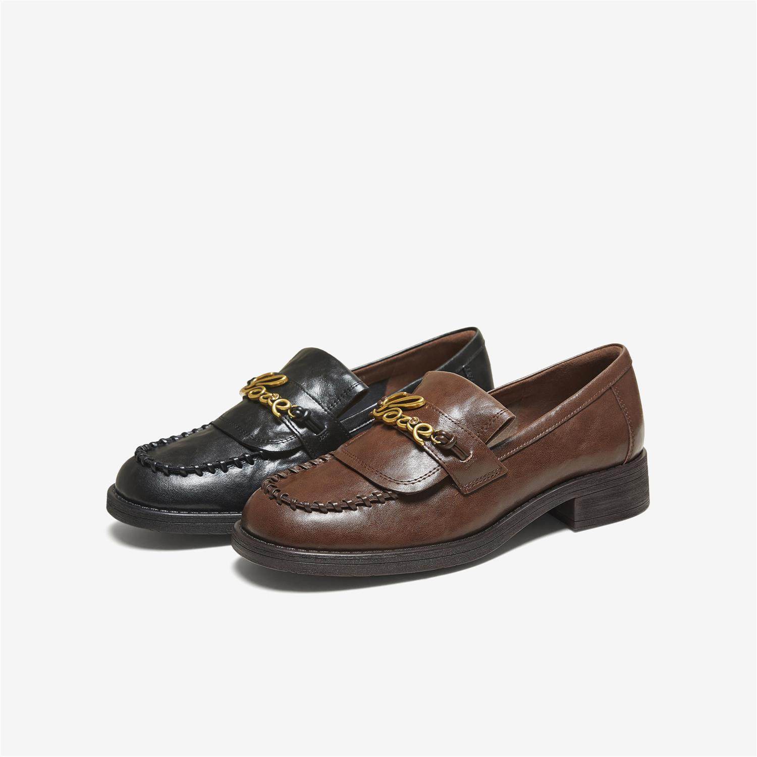 TATA他她情书女鞋2025秋季单鞋时尚休闲 皮鞋女乐福鞋子7JW22CA5