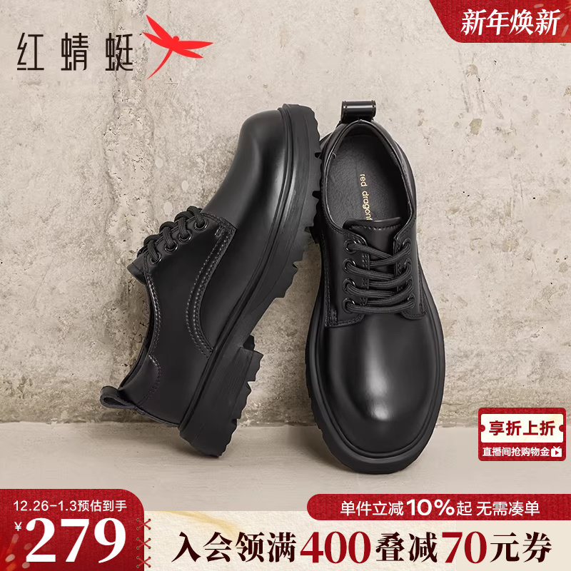 红蜻蜓大头男士皮鞋春秋季新款年轻男鞋休闲工装鞋正装厚底德比鞋