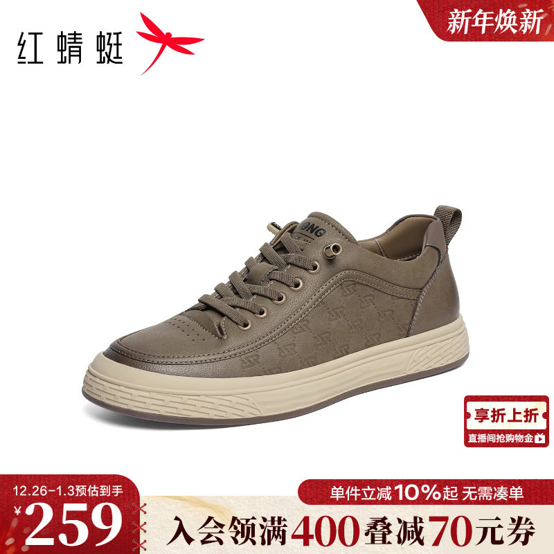 红蜻蜓休闲板鞋2025秋冬新款男鞋平底系带皮鞋男户外运动跑步鞋男