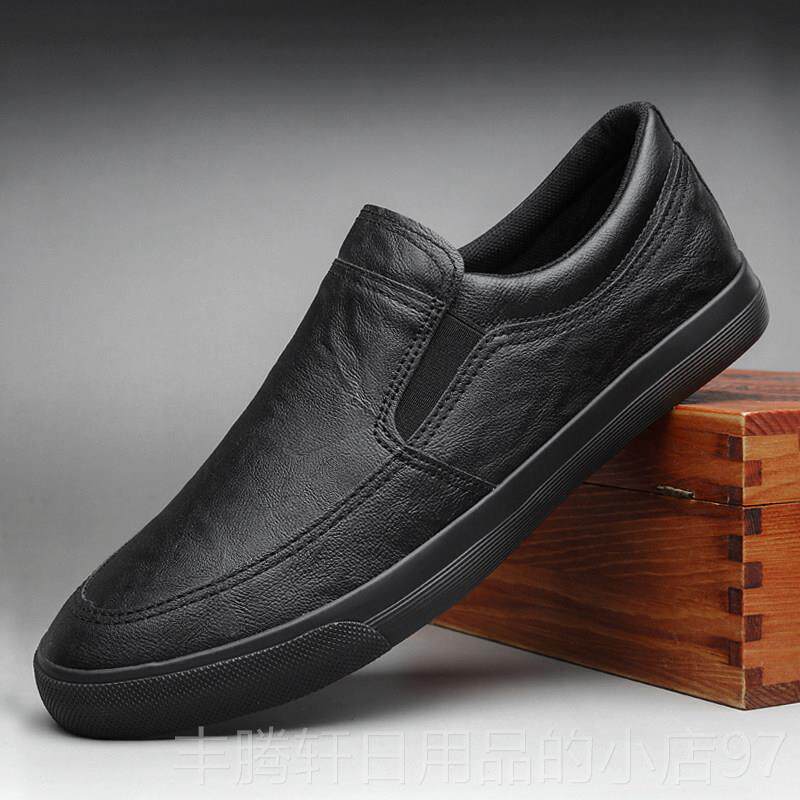 外贸男鞋真皮男士休闲皮鞋轻便透气一脚蹬懒人鞋软底软面皮乐福鞋