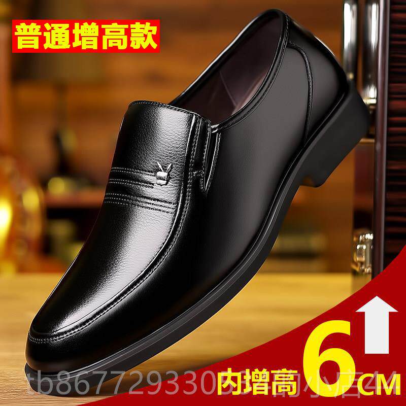 休闲皮鞋男一脚蹬套脚软皮高档商务男鞋冬季真皮厚底内增高德比鞋