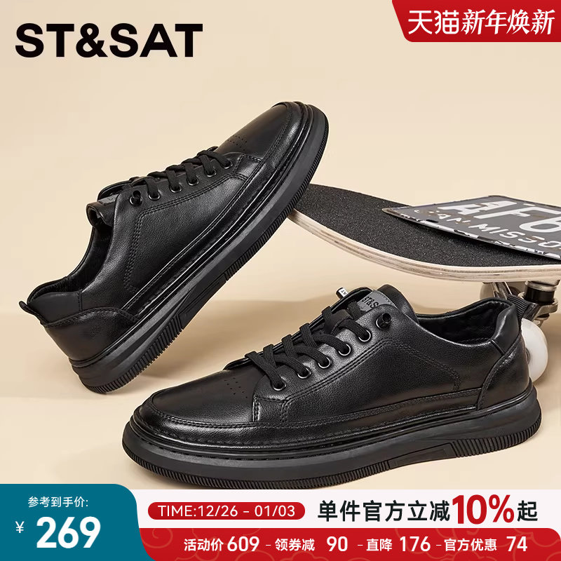 星期六板鞋男款2025新款真皮商务男鞋黑色运动休闲皮鞋男士通勤鞋