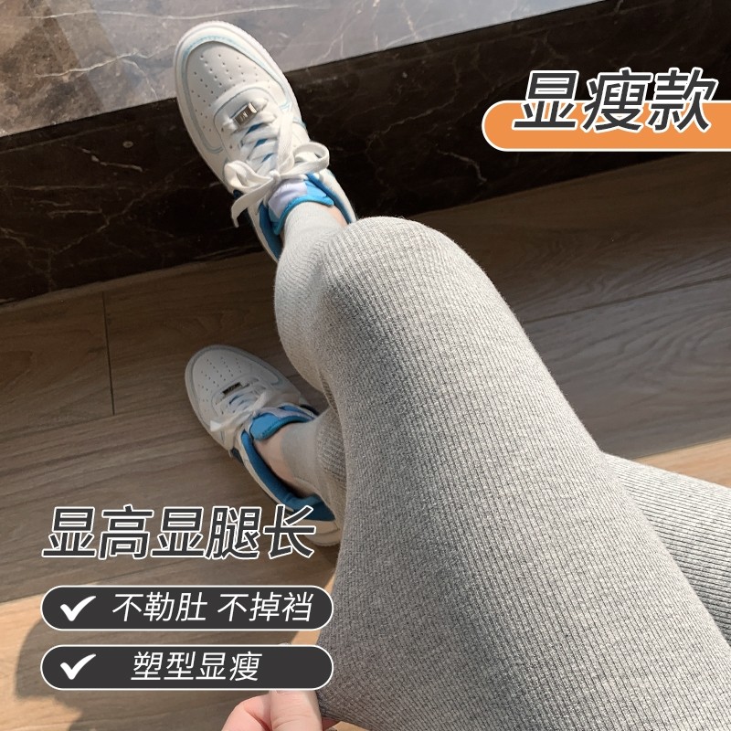 打底裤女春秋季外穿薄款黑色螺纹棉高腰紧身弹力大码秋裤小脚长裤