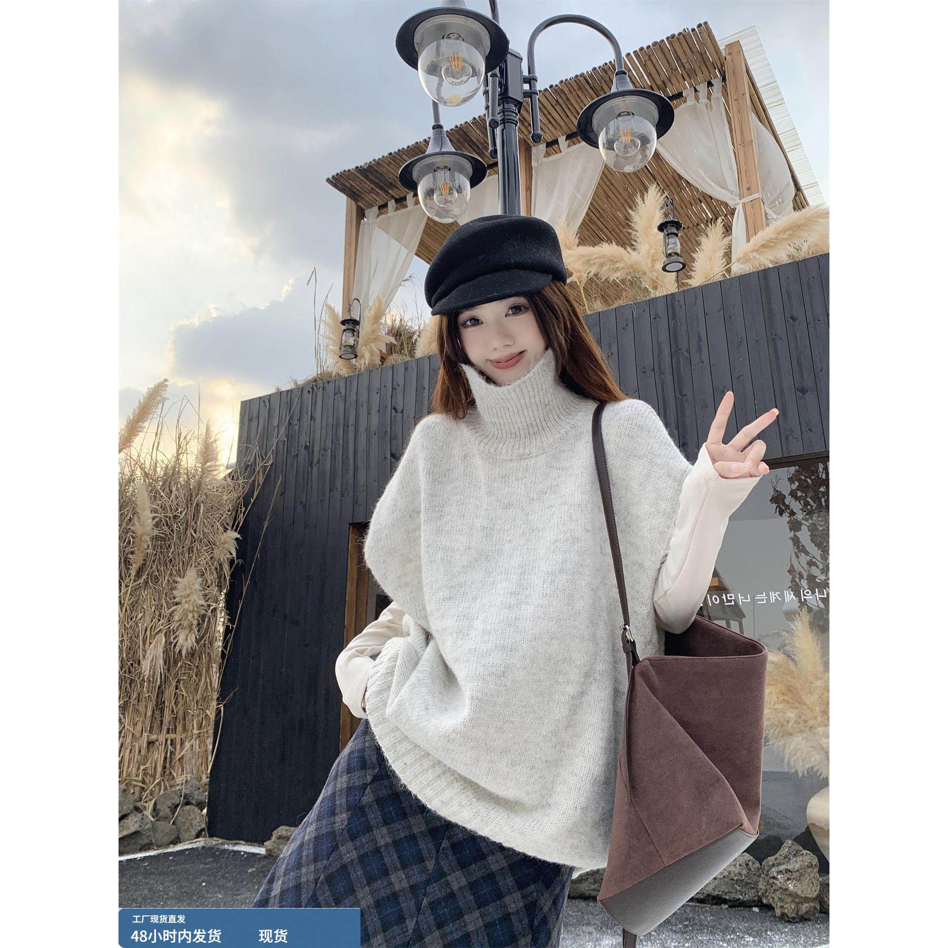 法式慵懒风坎肩高领毛衣背心女冬温柔叠穿高知宽松中长款针织马甲