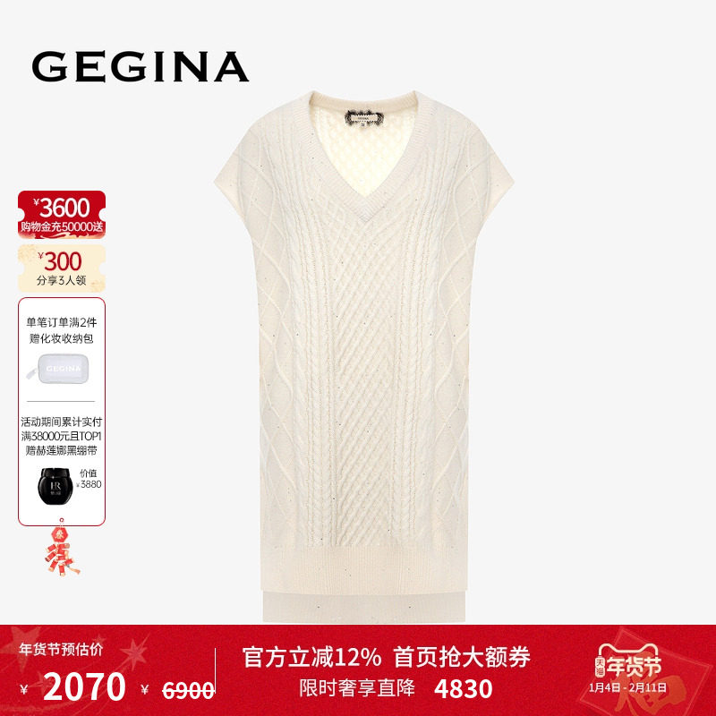 GEGINA吉吉娜秋冬新品V领中长款针织马甲背心马甲绵羊毛混纺毛衣