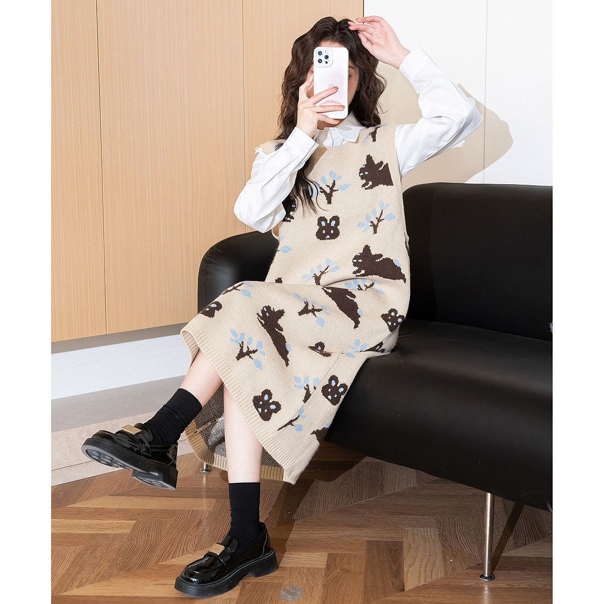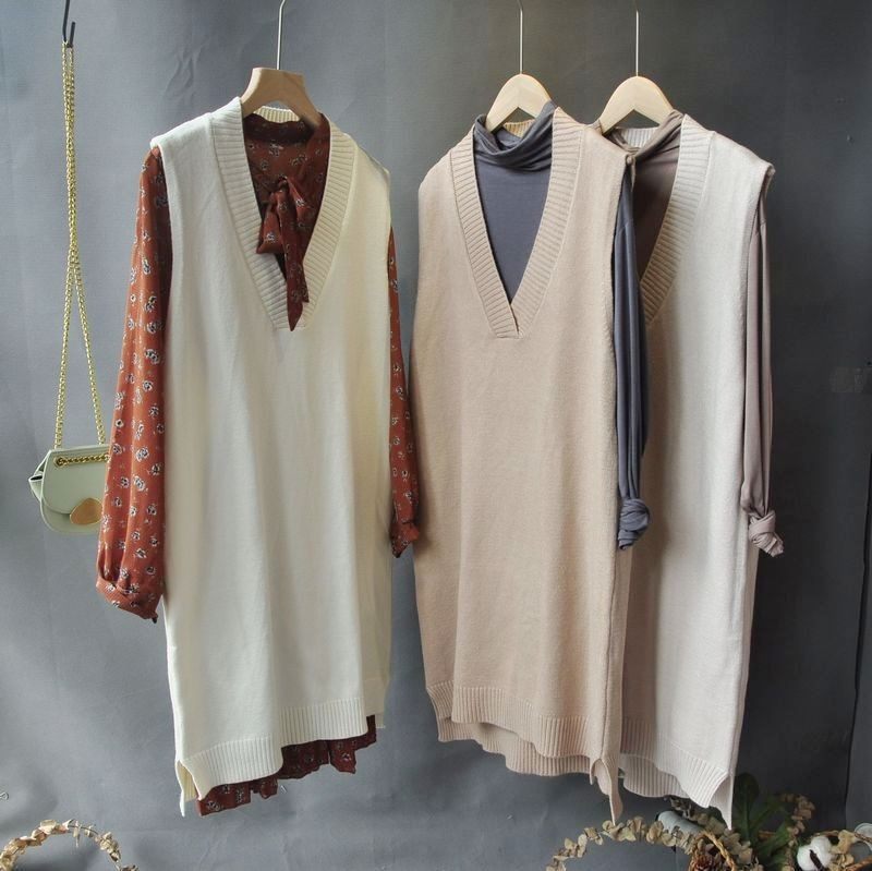 2025秋冬新款中长款v领毛衣背心衬衫女韩版宽松针织马甲打底衬衣