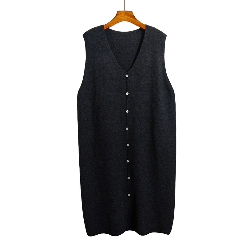 秋冬中长款宽松加大码马甲女羊毛针织过膝无袖毛衣坎肩背心连衣裙