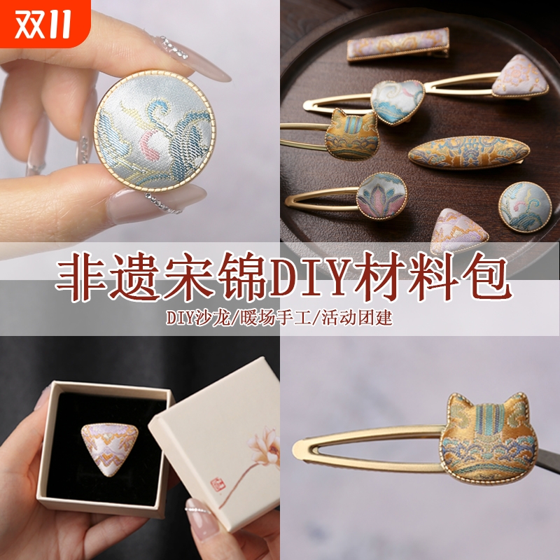 手工宋锦发夹diy材料包新中式发饰发绳胸针仿刺绣团建沙龙活动