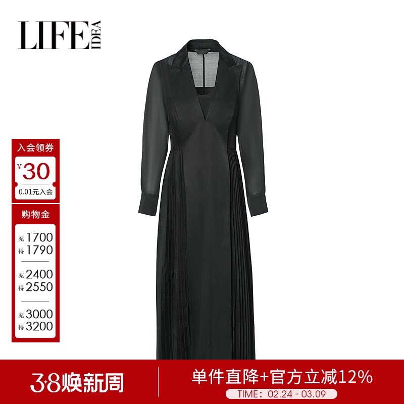 非凡2620法式V领亮片拼接连衣裙长袖显瘦中长裙气质时尚春装新款