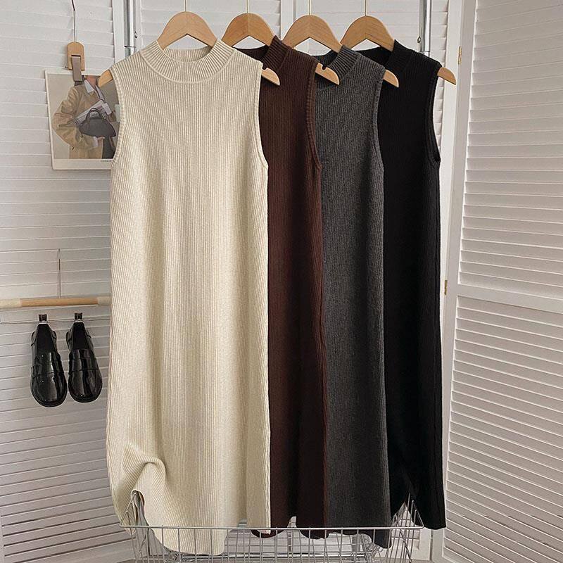 秋冬法式优雅中长款针织连衣裙新款无袖百搭高级感针织裙时尚长裙