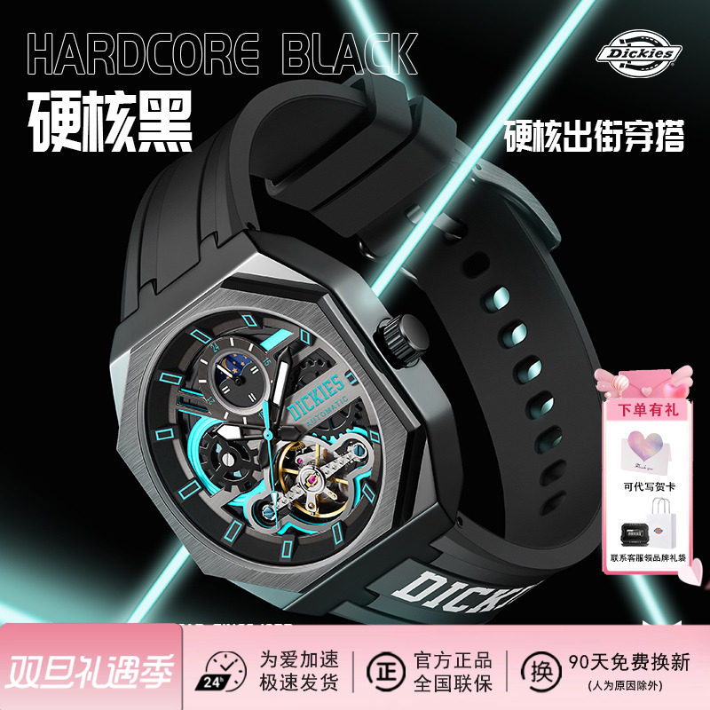 【明星同款】Dickies机械手表男镂空全自动潮流机械表学生日礼物
