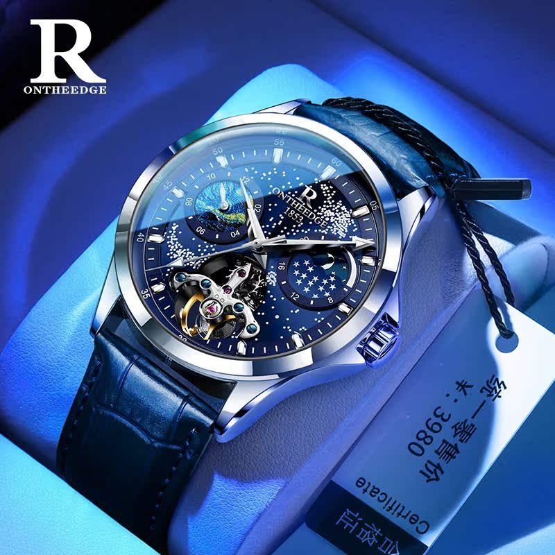 男表机械风手表星空月相镂空表盘钢带商务风休闲潮流正品名牌防水