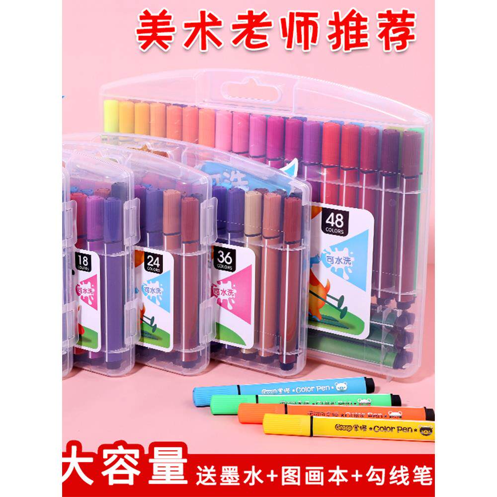儿童软头水彩笔套装24色小学生用36色彩笔幼儿园48色可洗画笔包邮