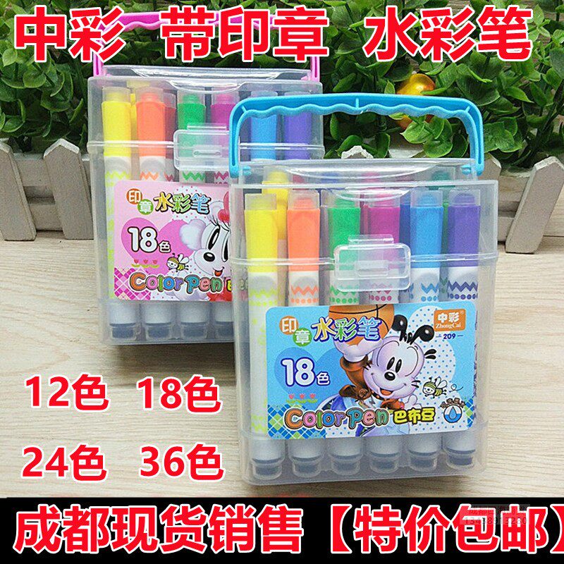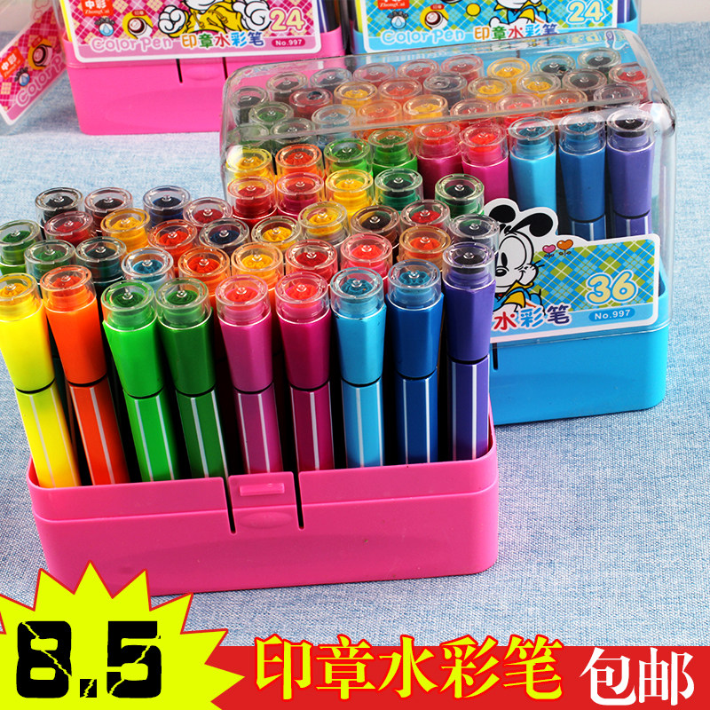 包邮中彩水彩笔36色套装儿童幼儿园可水洗彩色画笔24色印章水彩笔