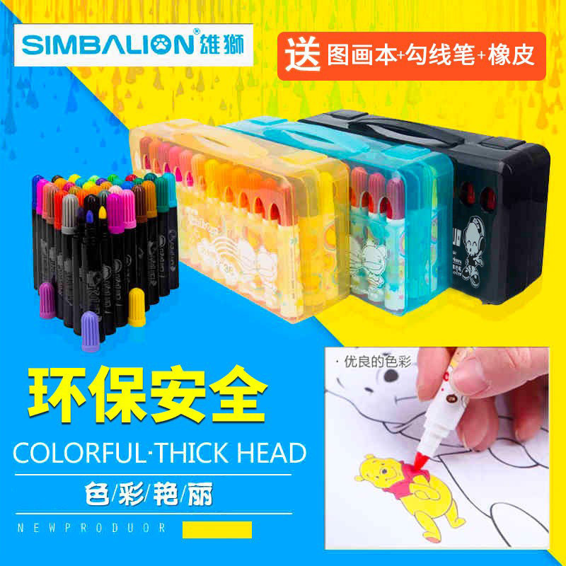 买1送3雄狮36色水彩笔粗头儿童绘画笔套装学生涂鸦彩色笔文具包邮