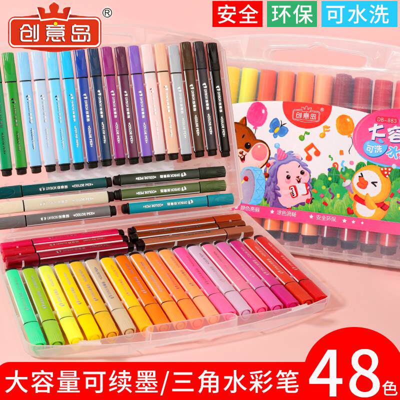 包邮得力水彩笔48色儿童可水洗彩笔36色绘画画笔幼儿园涂鸦笔套装