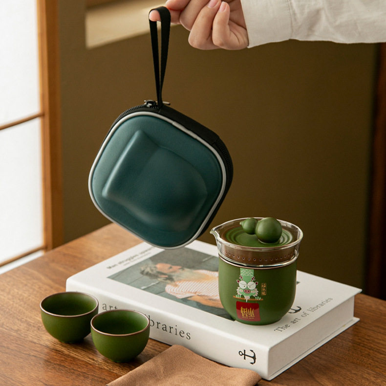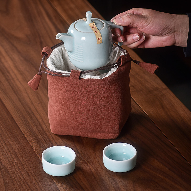 轻奢高档汝窑旅行茶具便携快客杯一壶两杯户外露营泡茶壶定制logo