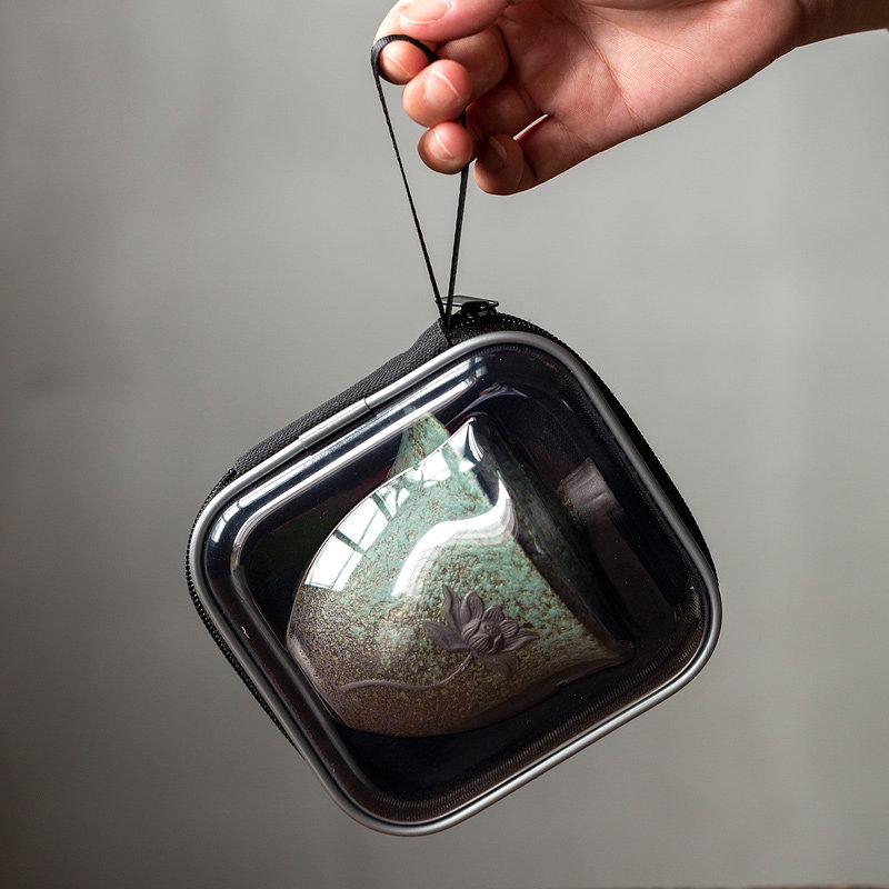 碌心 中式复古莲韵快客杯 粗陶窑变旅行茶具 一壶两杯便携小套装
