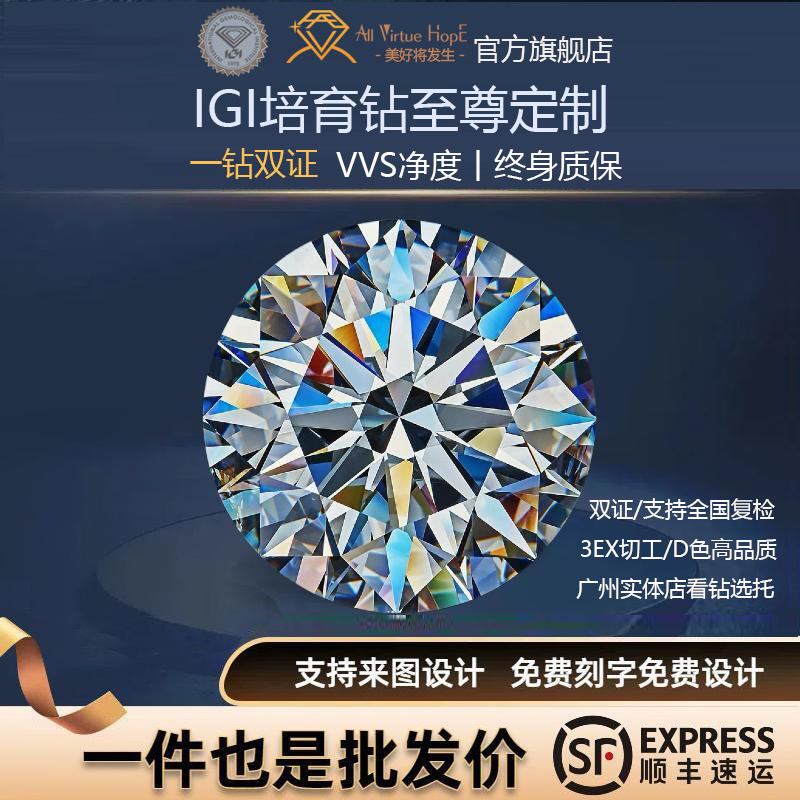 【培育】IGI培育钻石裸钻裸石定制人工合成钻石戒指耳钉项链1克拉