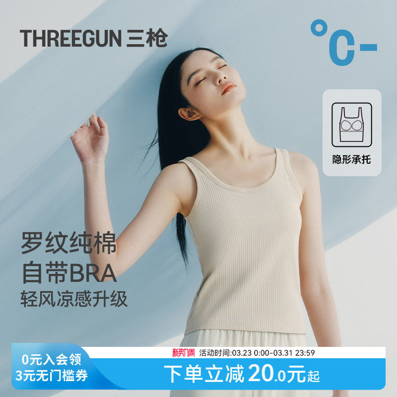 三枪背心女士带胸垫纯棉罗纹显瘦内搭文胸一体式美背高弹纯欲吊带