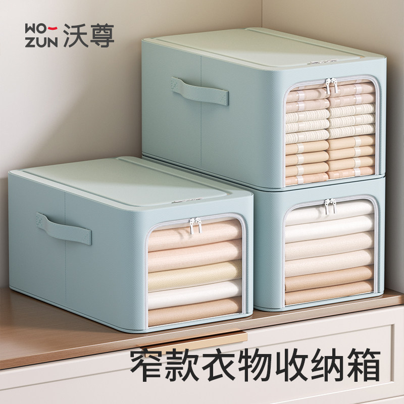 收纳箱牛津布窄款布艺家用可视衣服衣物整理储物箱子衣柜分层神器