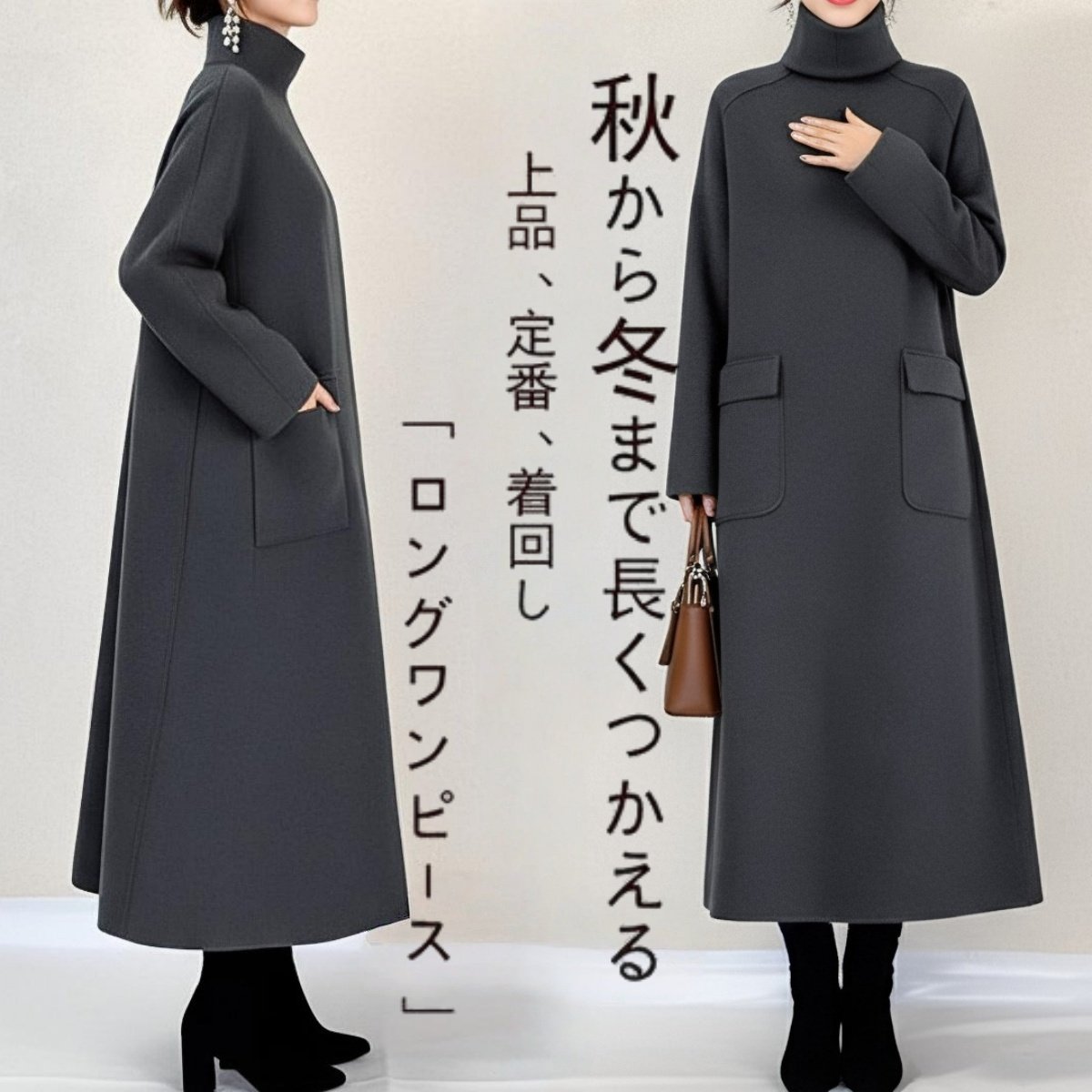 2025秋冬款外贸跨境秋冬日系新款高领宽松毛呢连衣裙中长款裙子女