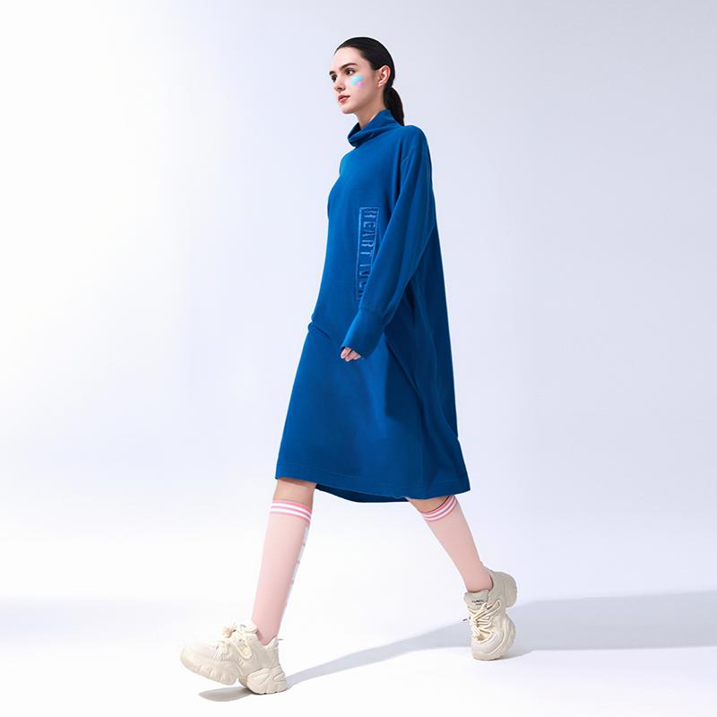 兮风原创简约显瘦茧型连衣裙纯色垂坠宽松显高领长袖袍子25秋冬款