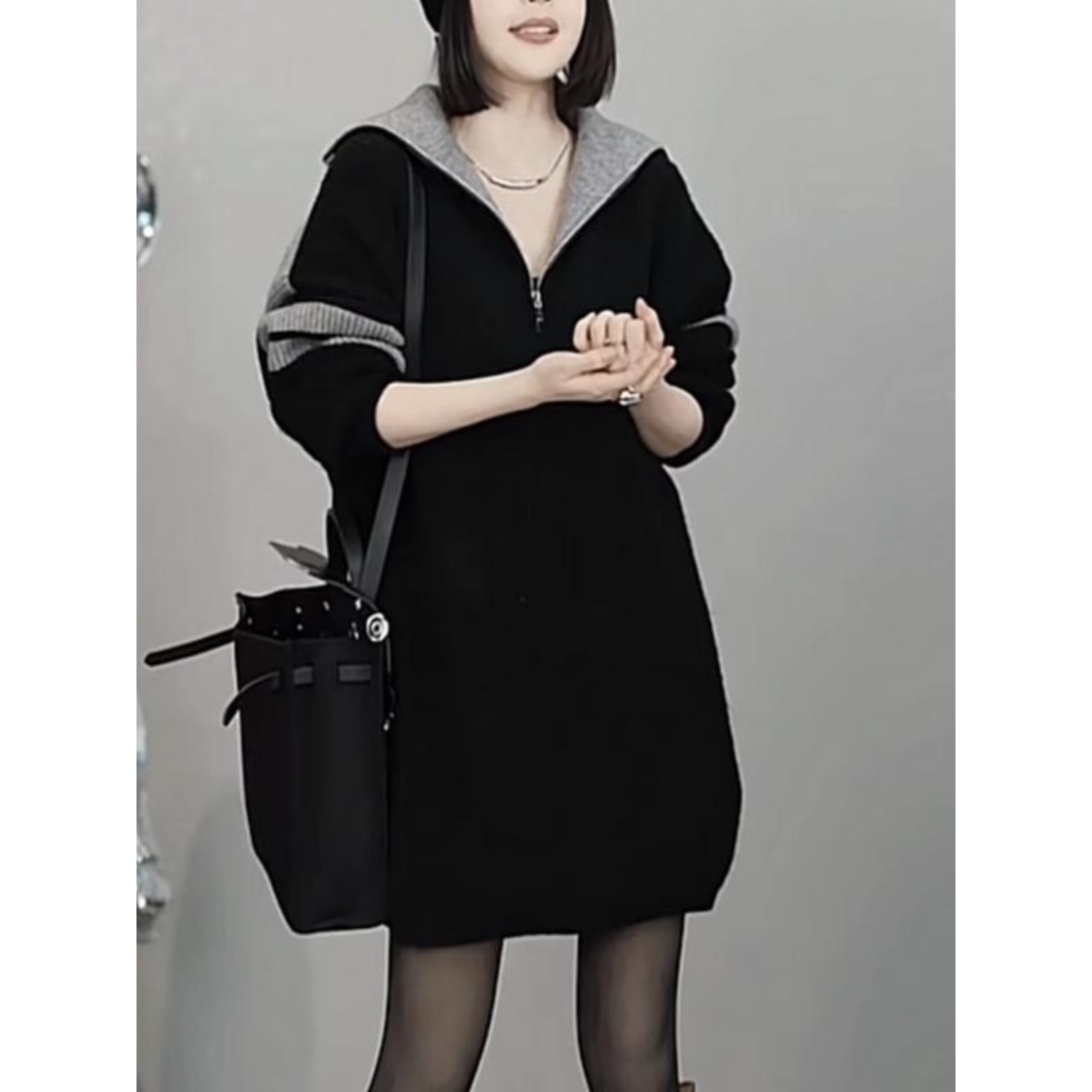 原创设计秋冬款高领打底衫宽松长袖内搭气质休闲打底针织连衣裙女