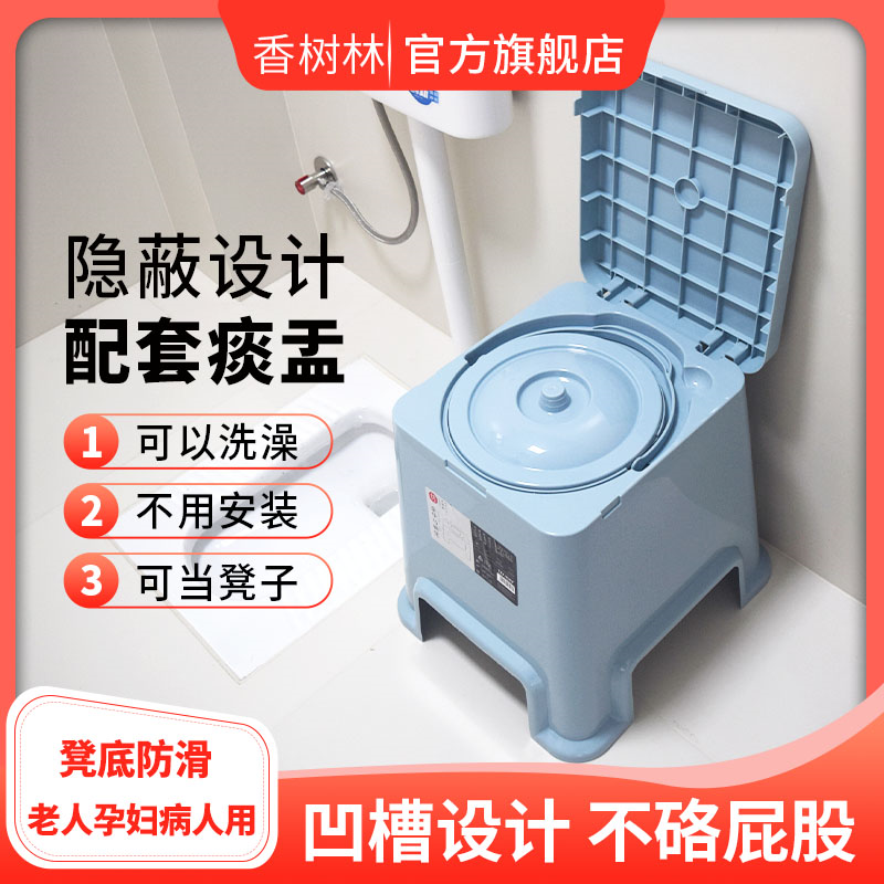 家用老人孕妇移动坐便马桶室内防臭坐便器加厚防滑床边痰盂洗澡凳