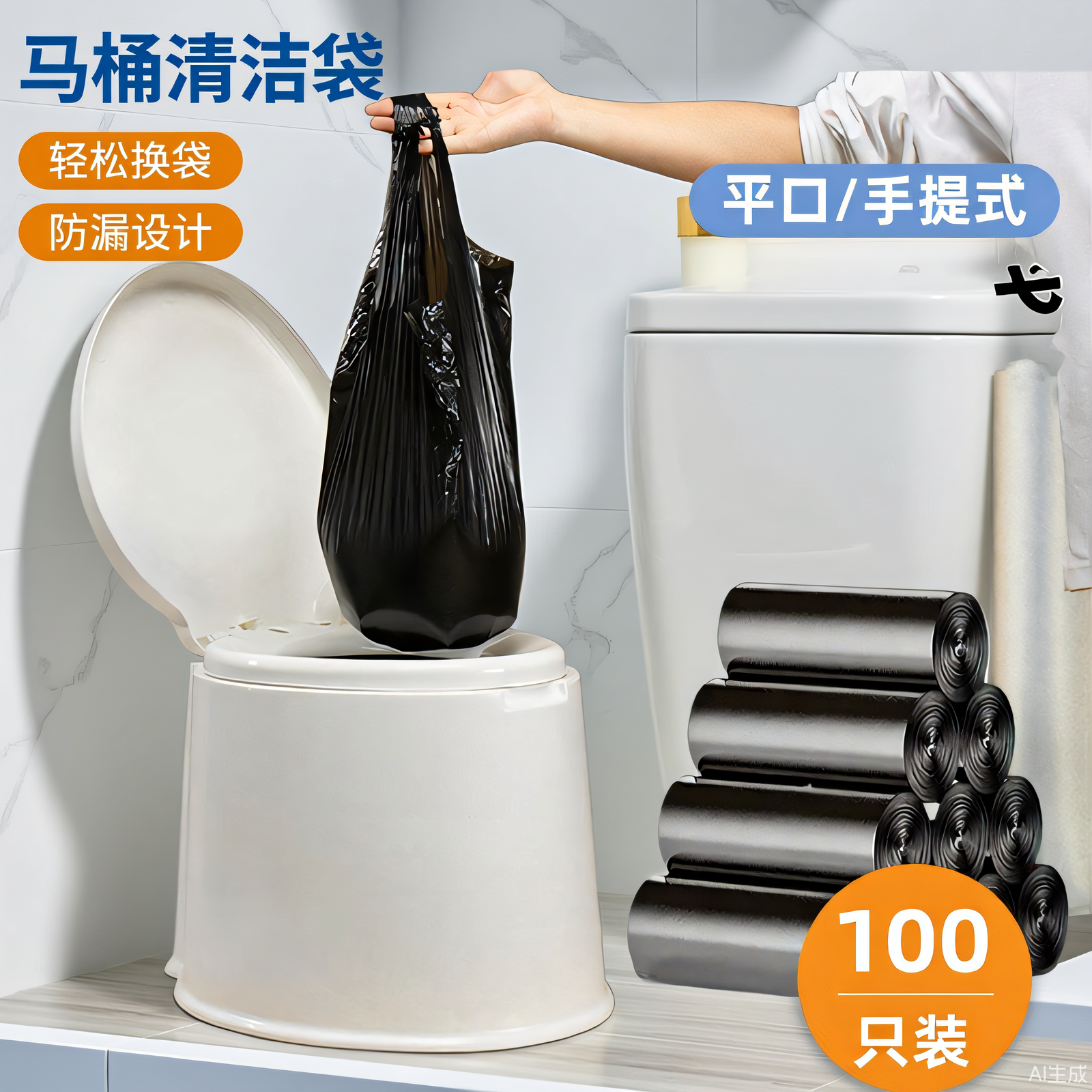 移动马桶专用垃圾袋塑料清洁袋老人坐便器加厚黑色平口车载清洁袋