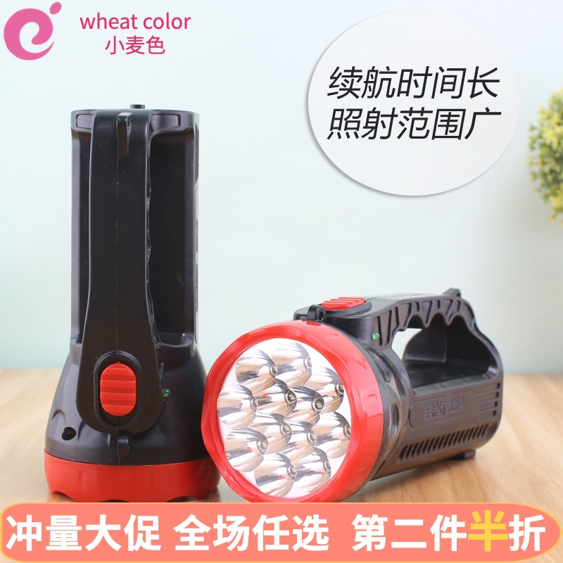 12灯LED充电手电筒 二档户外强光探照灯手提手电筒露营照明灯头灯