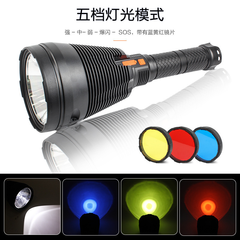LED其他垂钓手大手电筒 聚光远射家用应急户外登山巡逻强光探照灯