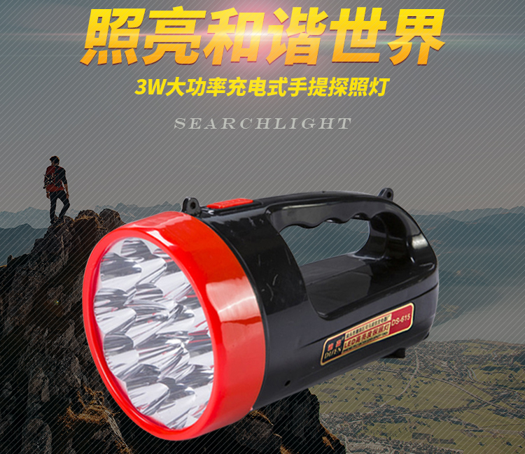 家用户外探照灯手电筒可充电远射强光探照灯手提灯电筒超亮LED灯