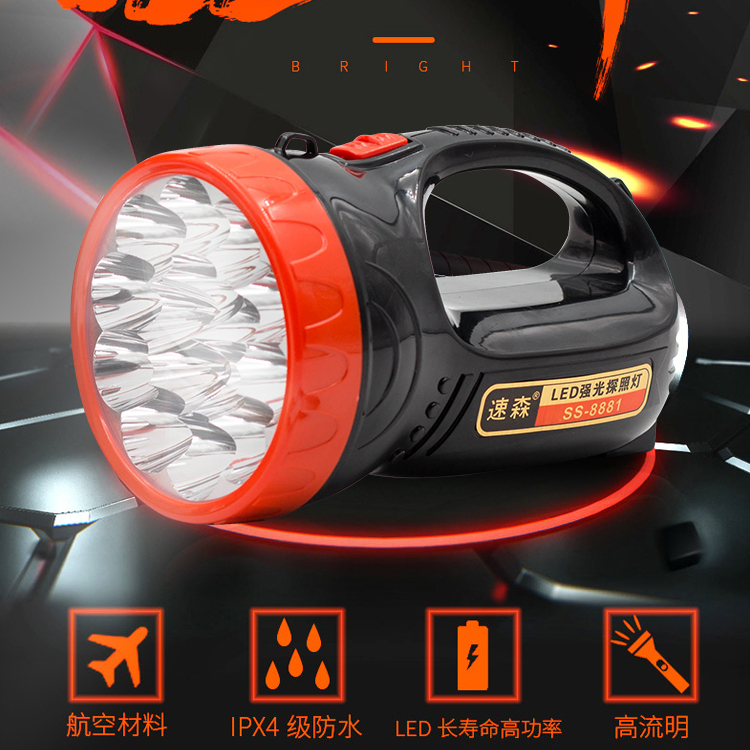led强光探照灯超亮远射可充电手提灯户外多功能大功率聚光手电筒