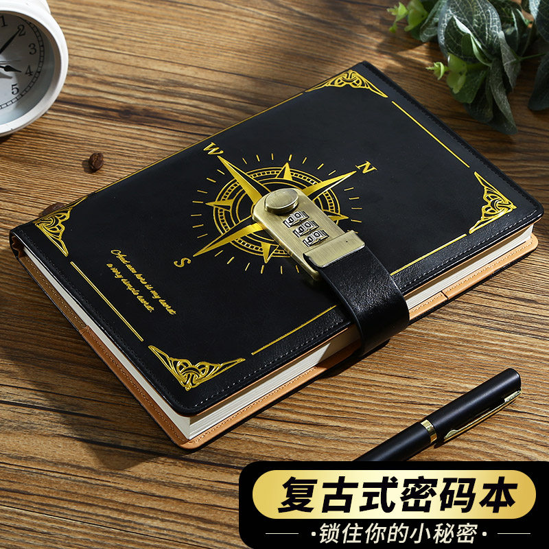 复古密码本带锁创意日记本A5简约笔记本日韩加厚文艺少女手账本笔记本子高中大学生密码记事本可支持定制logo