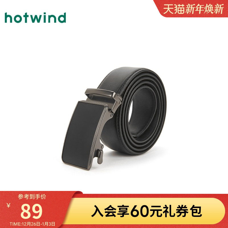 热风2025年春季新款男士简约自动扣皮带光面单圈黑色休闲腰带