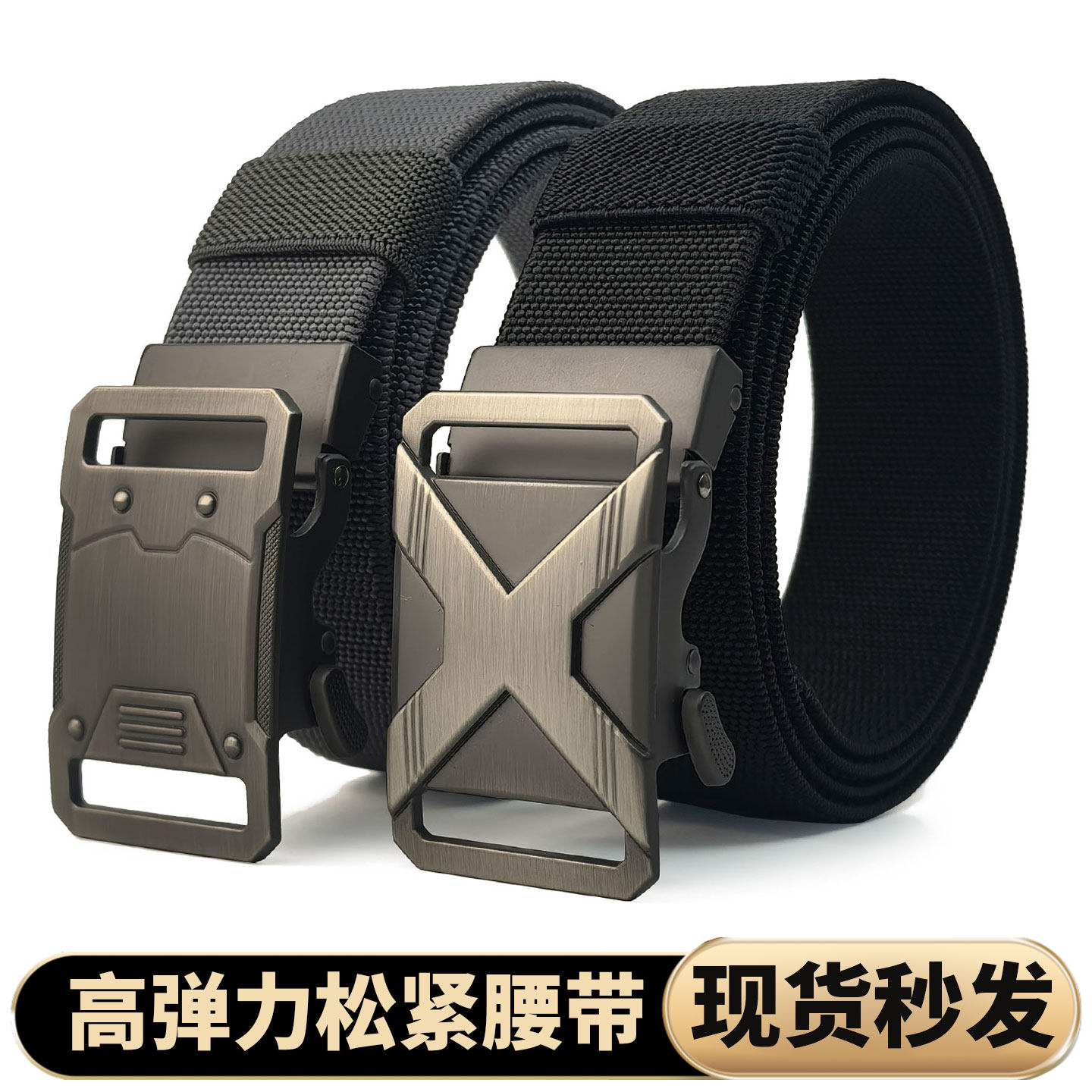 2025新款男女士帆布尼龙腰带自动扣皮带学生调节松紧编织轻便无牙