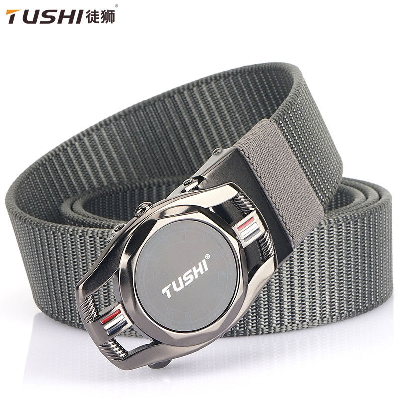 徒狮青年无牙自动扣皮带尼龙帆布腰带户外休闲商务西裤牛仔裤带潮