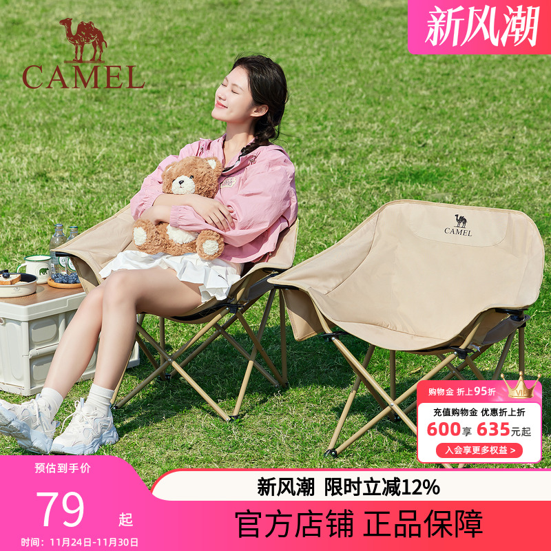 骆驼户外露营椅钓鱼凳子沙滩躺椅月亮椅带扶手折叠凳野营装备桌椅