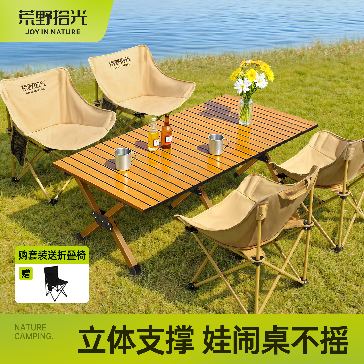 荒野拾光户外露营桌椅可折叠蛋卷桌便携式野餐野炊野营装备全套装