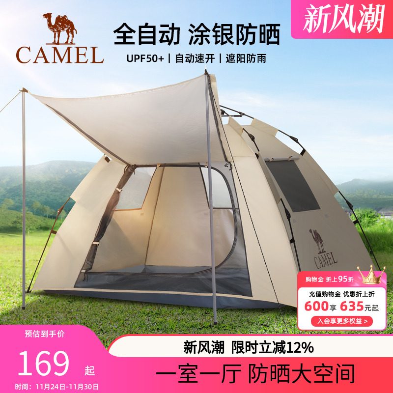 骆驼帐篷户外露营野营过夜便携式折叠全自动全套装备加厚黑胶新款