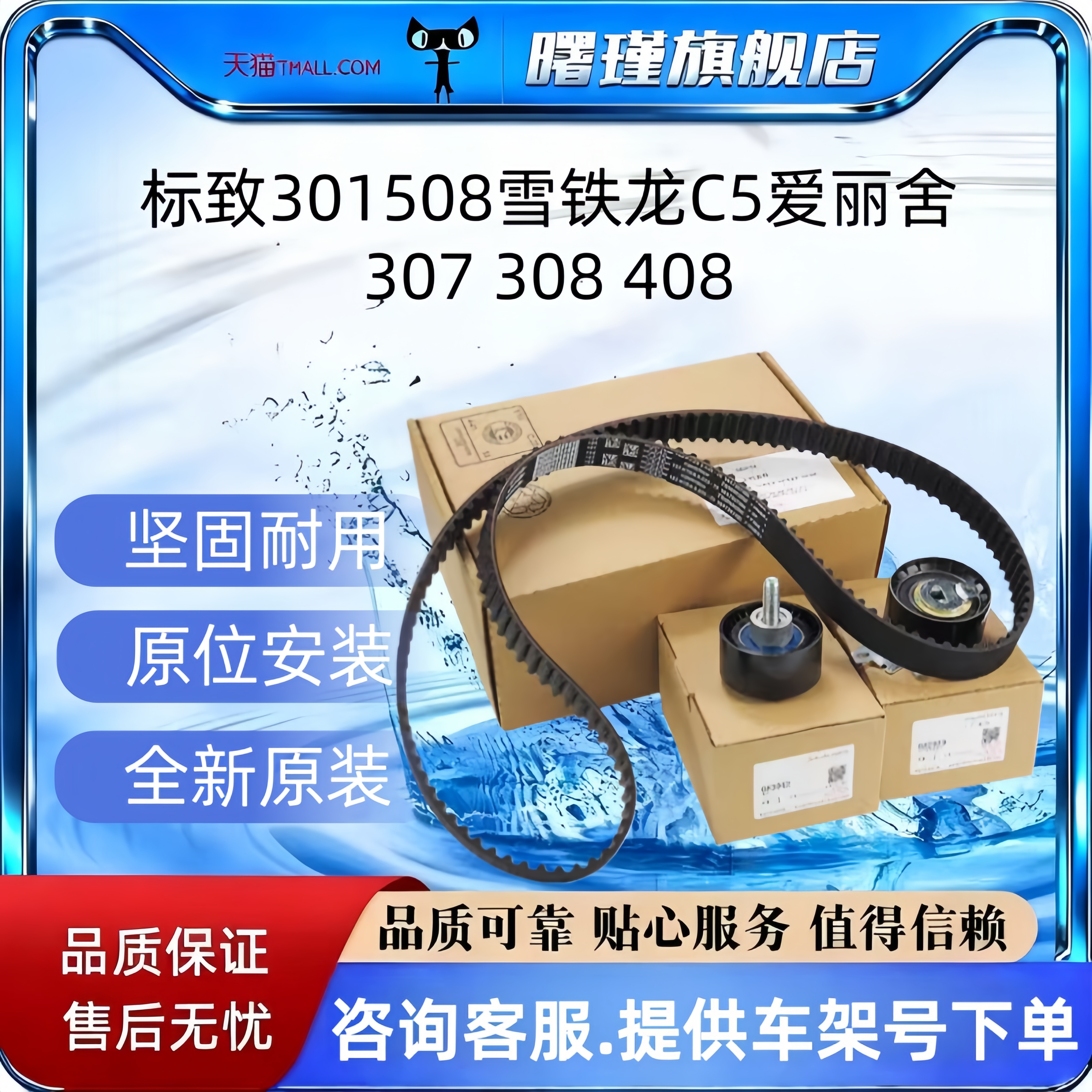 508标致307世嘉308雪铁龙C4L C5爱丽舍408正时皮带三件套套装3008