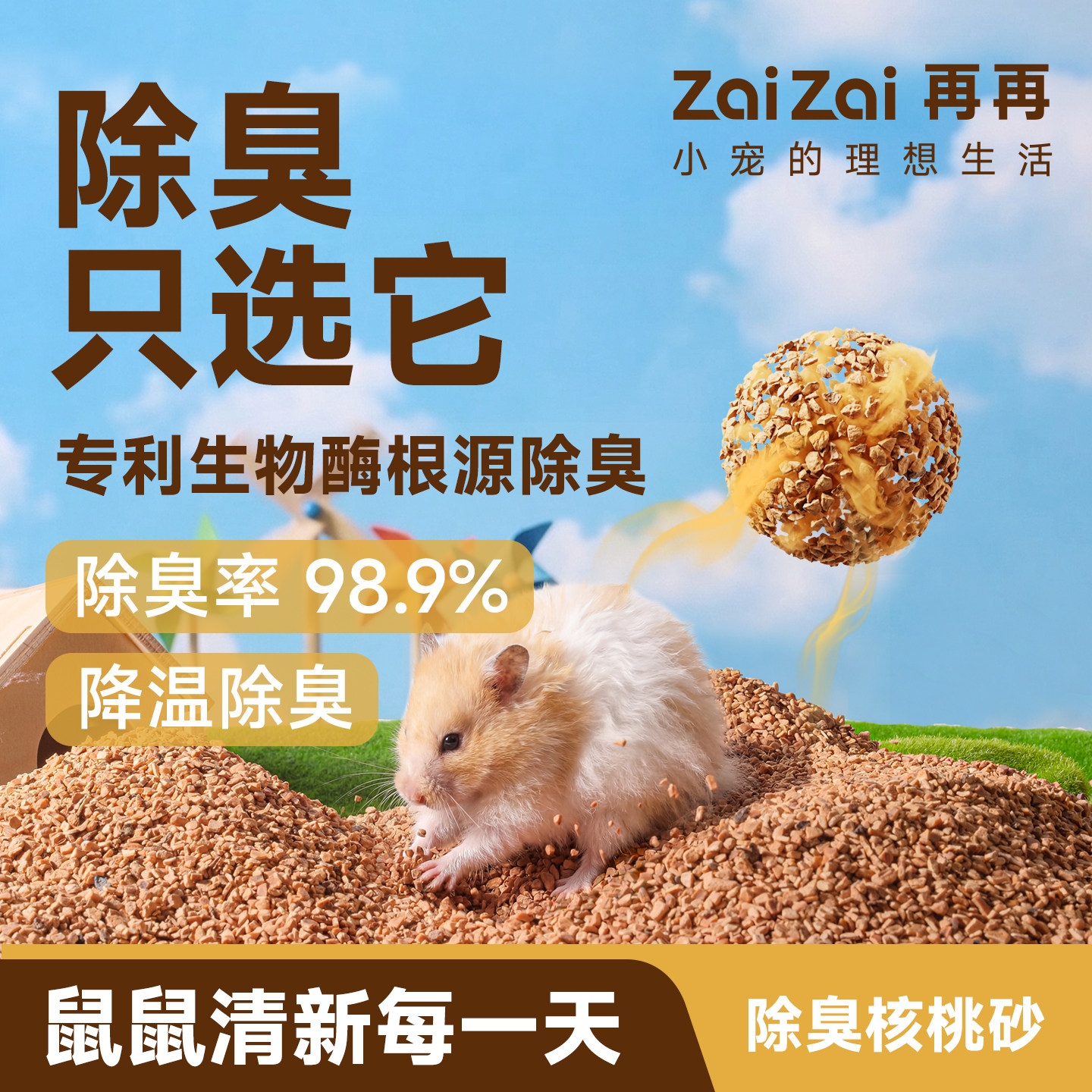 再再仓鼠核桃砂夏天垫料生物酶除臭颗粒沙金丝熊木屑花枝鼠专用品