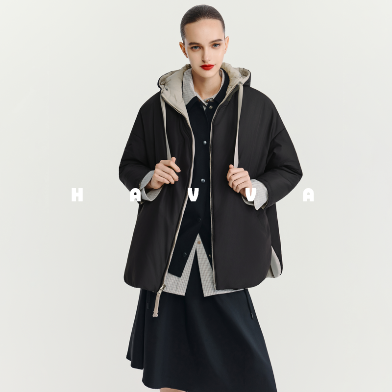 HAVVA两面可穿连帽中短款羽绒服抽绳女士保暖外套2025年冬Y3-2523