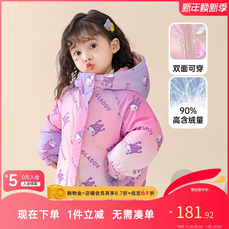 大耳象女童两面穿印花连帽羽绒服冬季新宝儿90白鸭绒保暖百搭外套