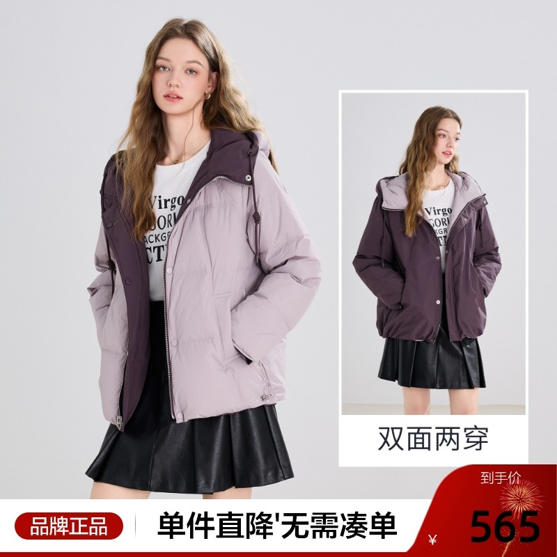 HAVVA蓬松舒适保暖连帽羽绒服短款可两面穿女外套2025冬Y3-25220