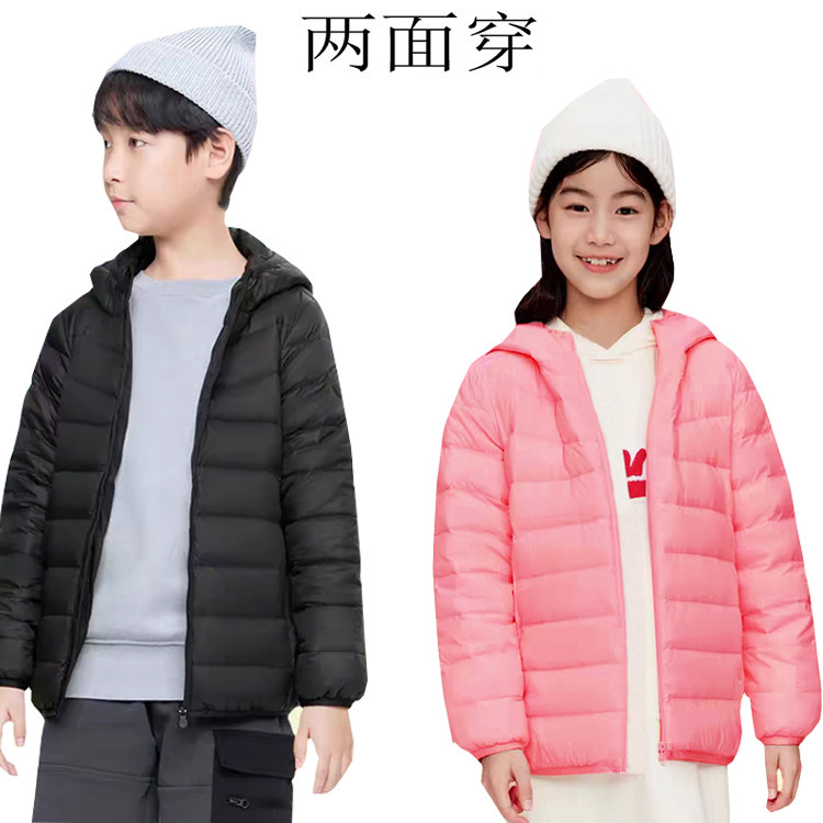 儿童轻薄羽绒服短款连帽保暖外套中大童男女童两面穿轻羽绒服长袖