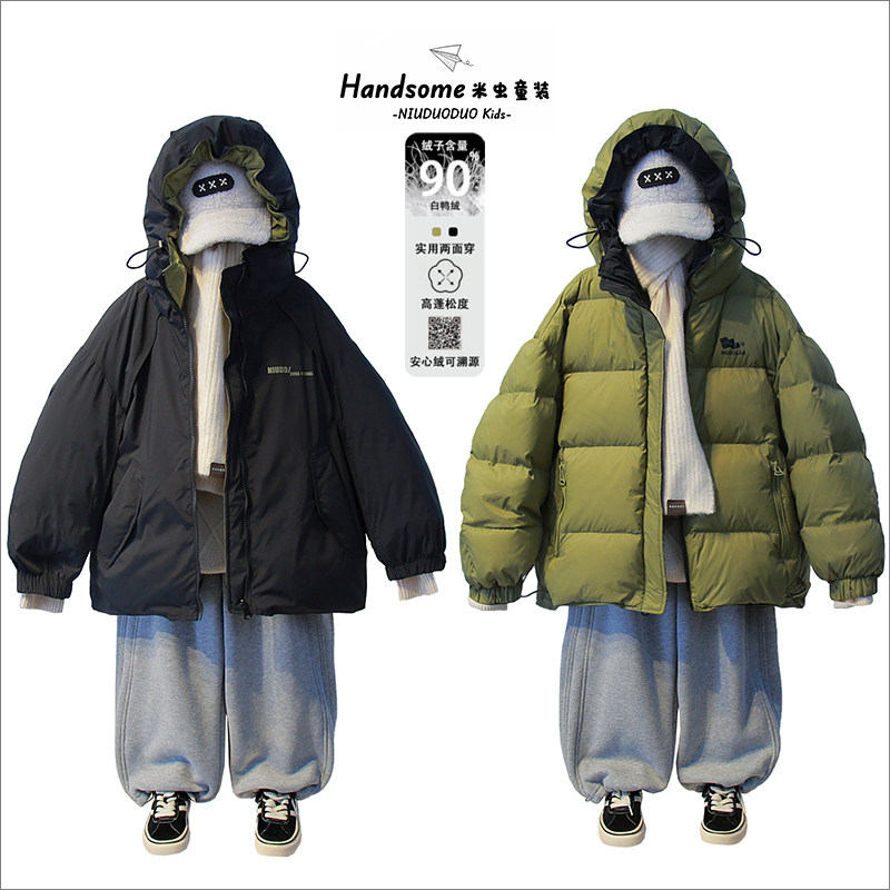 牛哆哆童装儿童两面穿90白鸭绒连帽羽绒服25冬新男女童外套45015